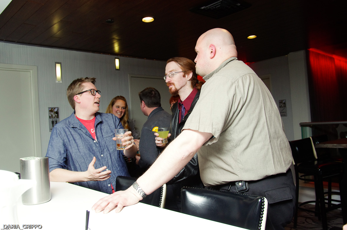 We were treated to appetizers and an open bar and I was able chat with Andrea Libman, who voices both Fluttershy and Pinkie Pie in the My Little Pony Friendship is Magic series (who is super cute by the way!) I also got to have a great conversation with Andy Price who is one of the MLP Comic artists for DWI, and Jayson Thiessen, director of MLP: FIM. Of course, by the time I got around to talking with Jason I was a couple of drinks in and so I don’t really recall what the conversation was about, but it involved lots of laughing and was a good time.